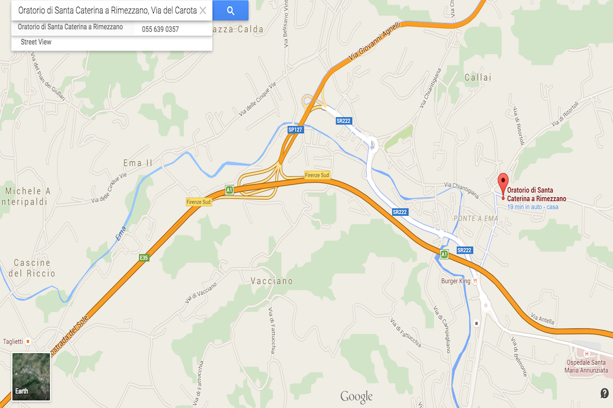 La cerimonia si terrà presso questo fantastico luogo d'arte, circondato dalle colline toscane. Avendo scelto il matrimonio civile abbiamo cercato per un po' un luogo che potesse accoglierci e catturaci e pensiamo che l'Oratorio di Santa Caterina delle Ruote sia un luogo ideale per il nostro matrimonio. Per raggiungere l'Oratorio, appena uscite dall'autostrada "Firenze Sud" troverete le indicazioni per "Ponte a Ema"; svoltate a dx e proseguite dritto fino alla rotonda, poi dirigendovi verso il centro del paese troverete le indicazioni e salendo su per la collina arriverete all'Oratorio. Il parcheggio è subito acconto sulla sinistra.